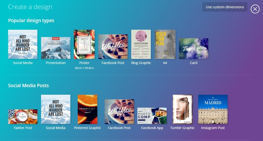 Dalam tool-tool tersebut telah terdapat template yang dapat digunakan untuk membuat gambar posting blog, update status di sosmed bahkan sampai template desain untuk keperluan promosi bisnis.