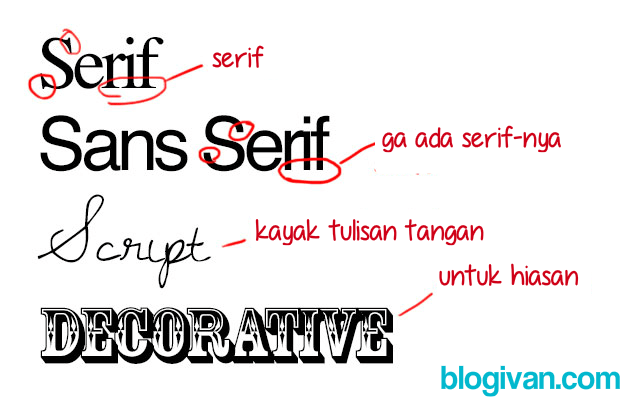 Dan dari begitu banyaknya font yang ada, kita perlu mengenali 4 jenis yang paling sering digunakan untuk keperluan ngeblog kita…